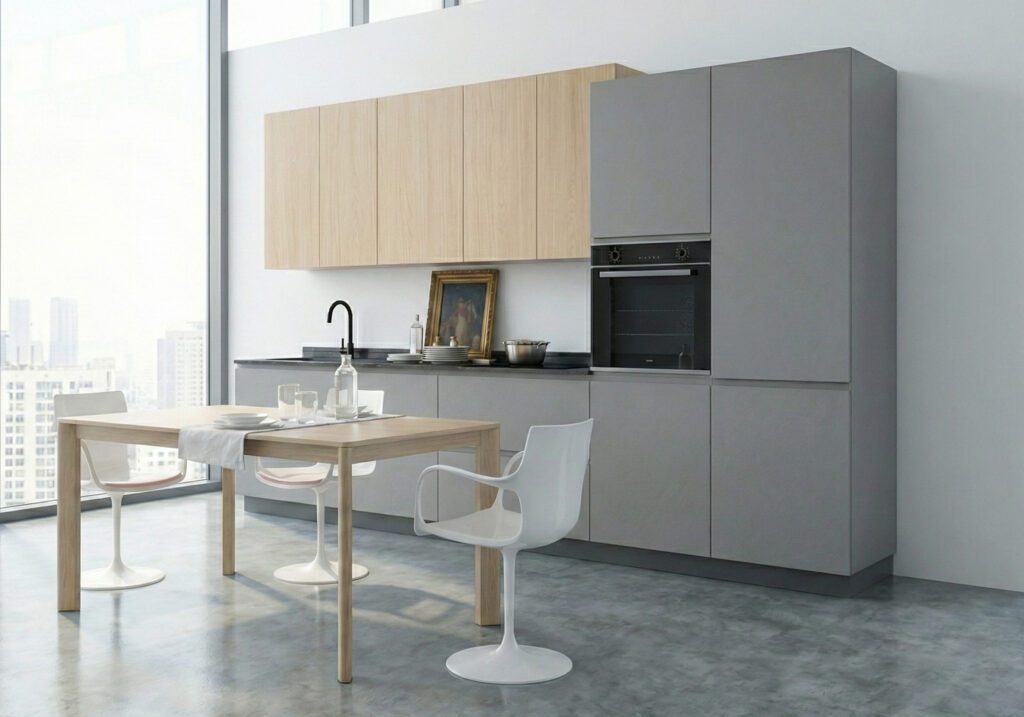 Il trucco per risparmiare: Se lo spazio lo permette, opta per una composizione Lineare o su due pareti parallele. Eliminando l’angolo, risparmi sul costo del meccanismo e ottieni una cucina più facile da montare e spesso più capiente.