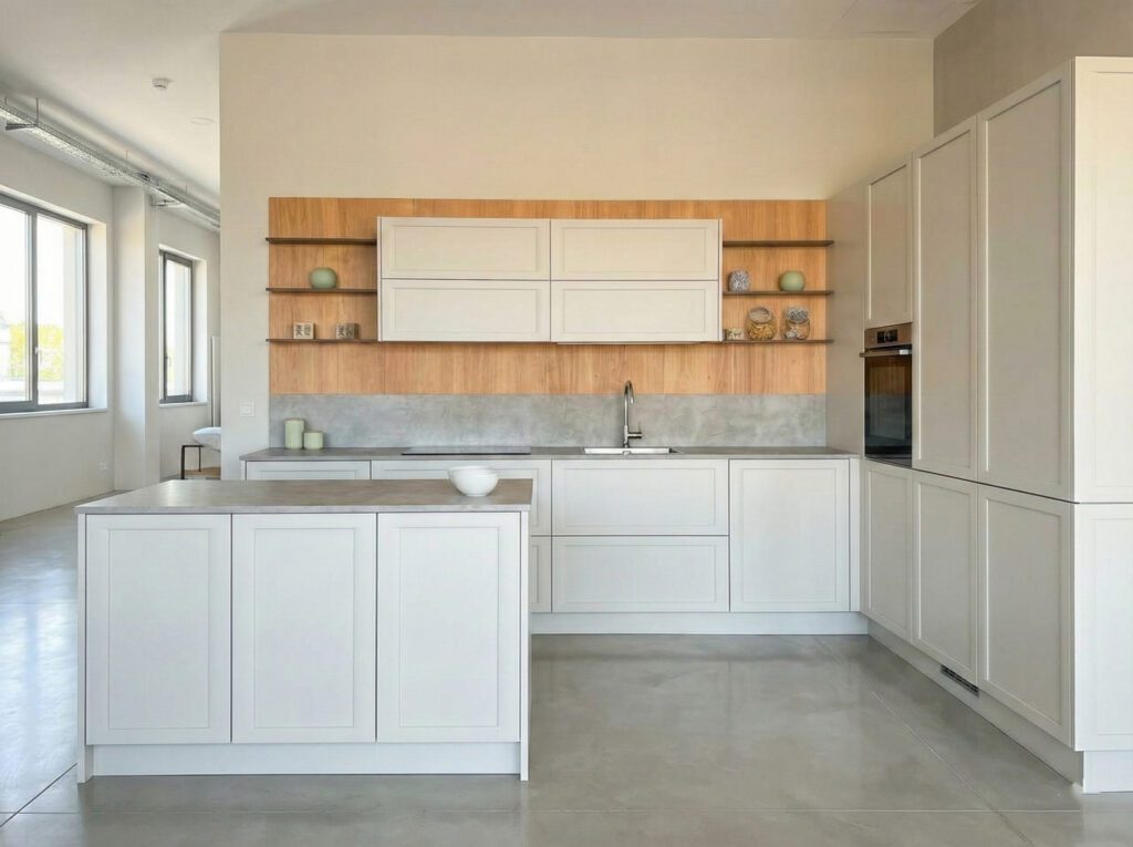 A Firenze, molti appartamenti (specialmente in centro storico) non godono di grandi vetrate o hanno soffitti bassi/travi scure che assorbono luce. Il bianco è un “moltiplicatore di luce” naturale. Riflette ogni raggio che entra dalla finestra, rendendo l’ambiente immediatamente più arioso e visivamente più grande. (Se hai una cucina dalla metratura ridotta, il bianco è quasi un obbligo: leggi i nostri consigli su [🔗 LINK: Arredare una cucina piccola: 10 soluzioni salvaspazio]).