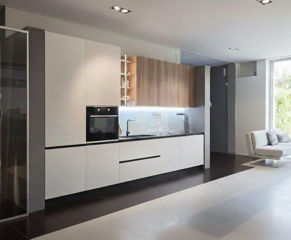 Qui sorge il problema principale dei grandi marchi commerciali che trovi pubblicizzati ovunque. Lavorando con moduli fissi (es. 60, 90 cm), quando devono inserire una cucina in una parete di Firenze che misura, ad esempio, 317 cm, sono costretti a usare fasce di tamponamento laterali per coprire il buco rimasto. Risultato? L’effetto moderno e minimale svanisce. Si vede che è una cucina “adattata”.