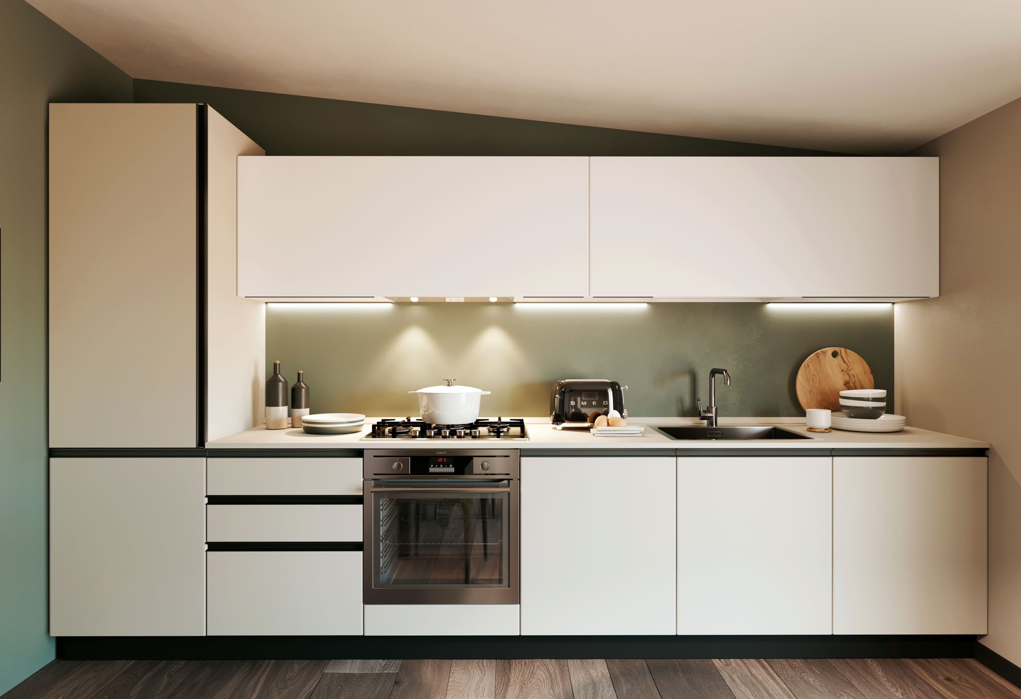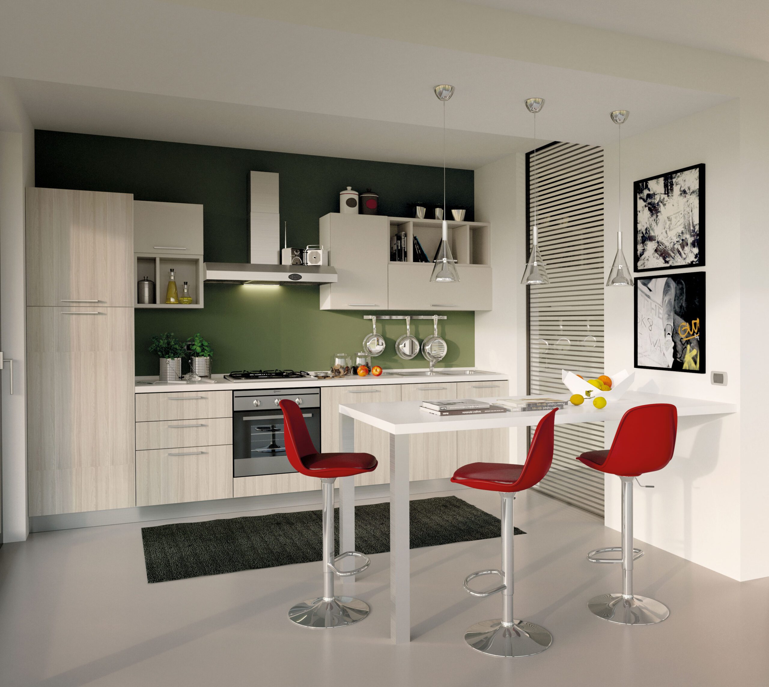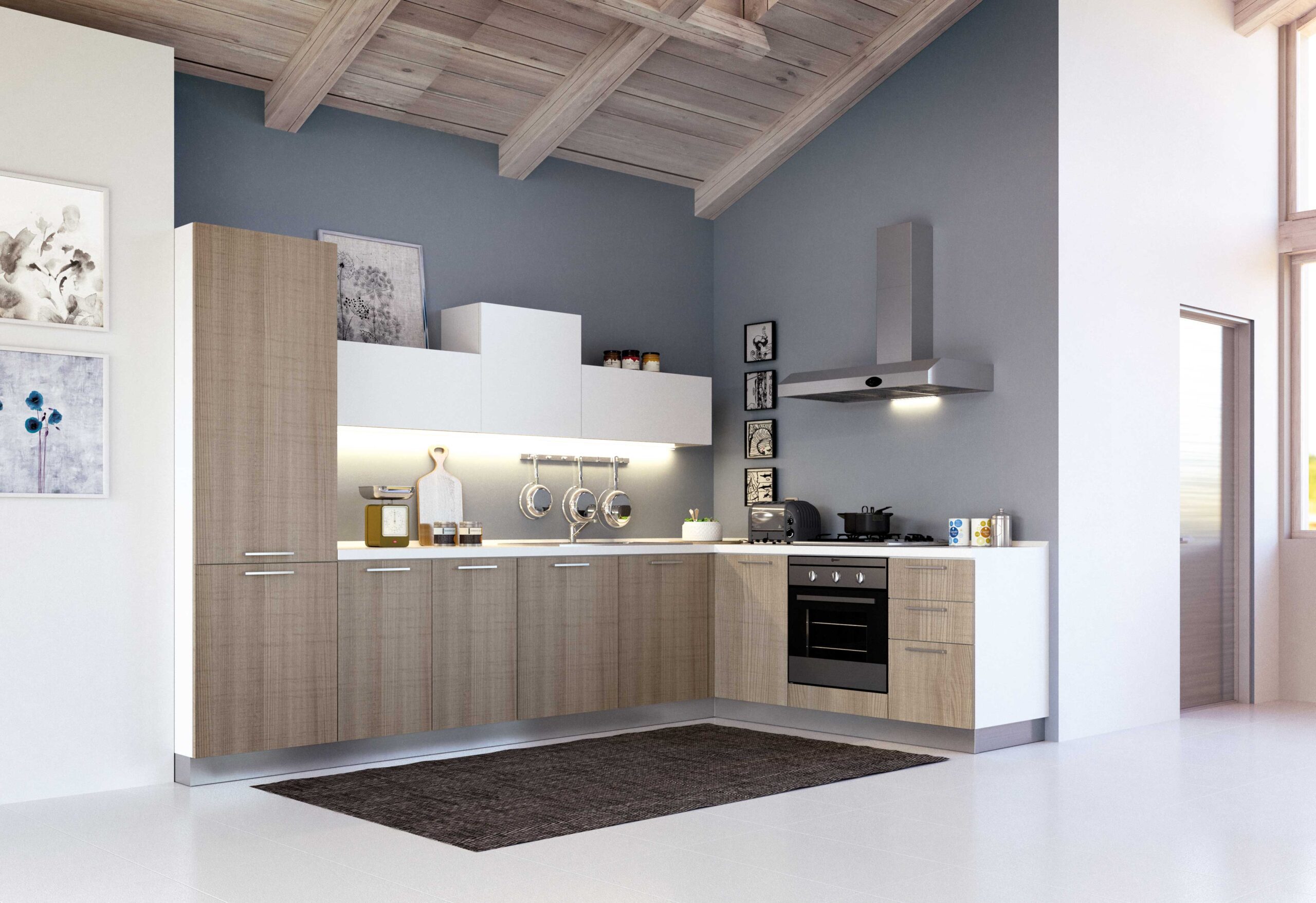 Ricorda che l’ospite “compra” con gli occhi scorrendo le foto sul telefono. Una cucina in melaminico semplice può sembrare di lusso se giochi con: