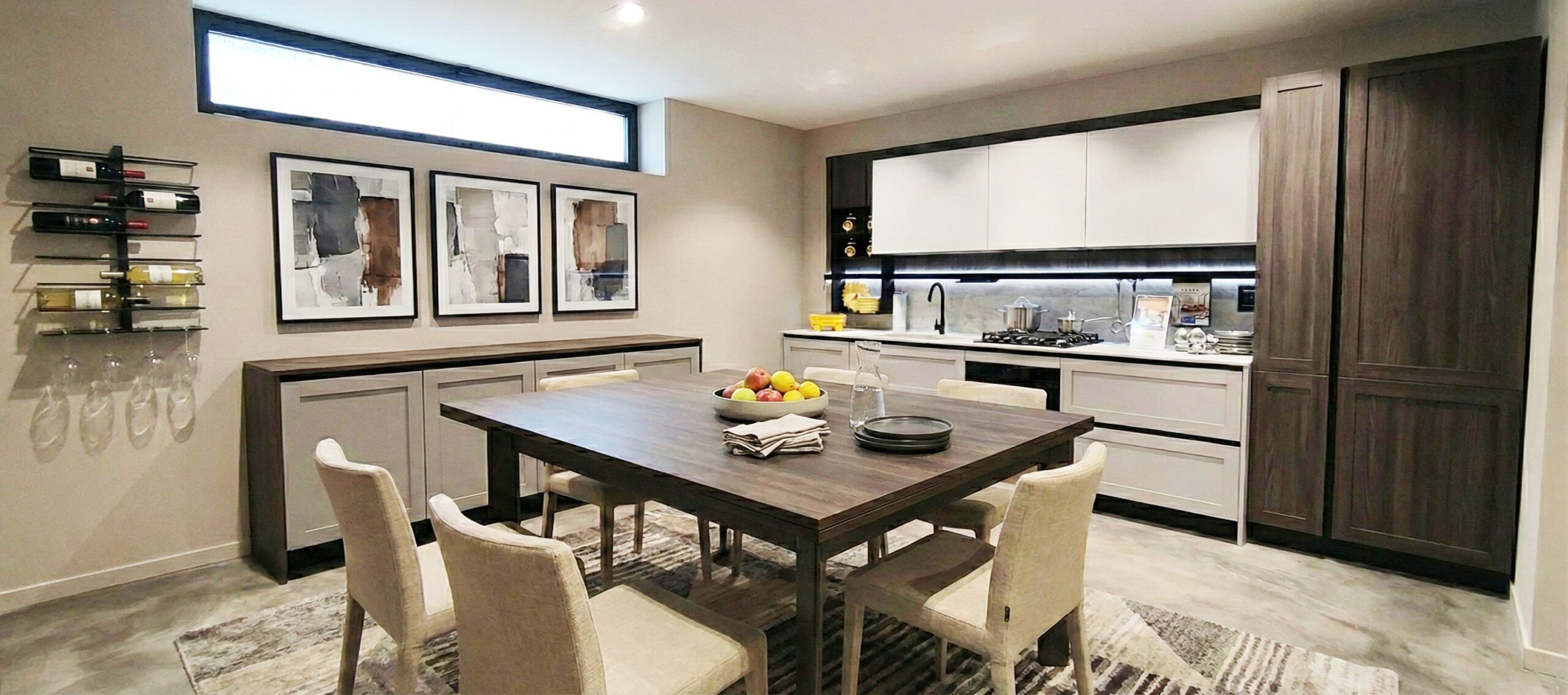 Quando si pensa alla taverna, viene subito in mente la cucina in finta muratura pesante o il legno scuro “arte povera”. Ma noi siamo La Casa Moderna: amiamo le linee pulite e attuali.