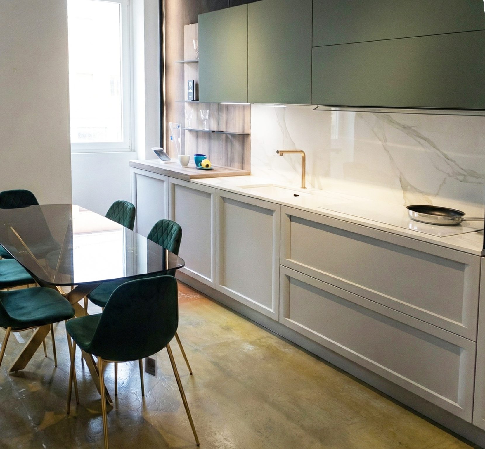 Il piano cucina va toccato. Ti invitiamo nel nostro showroom a Firenze: abbiamo campionari di tutti questi materiali. Potrai vederli sotto la luce, toccarli e mettere a confronto le lastre vere per capire quale “pelle” vuoi dare alla tua nuova cucina.