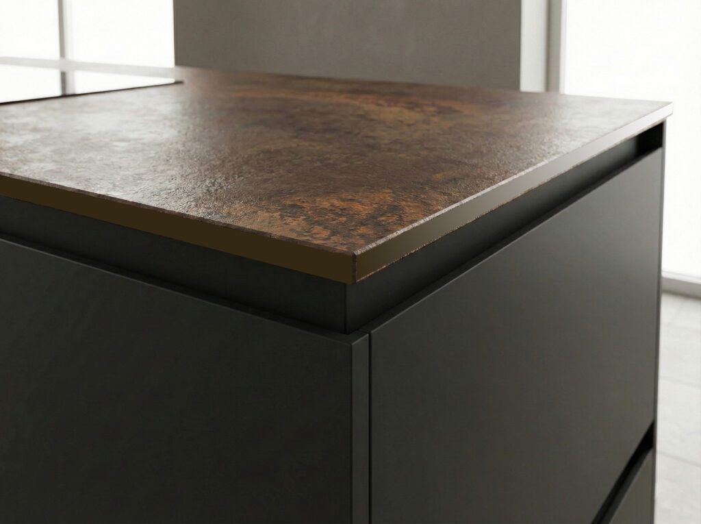 - Il nostro consiglio: Se scegli il Grès, è fondamentale una progettazione attenta dei bordi e un minimo di cura nel maneggiare oggetti pesanti vicino agli spigoli vivi.
