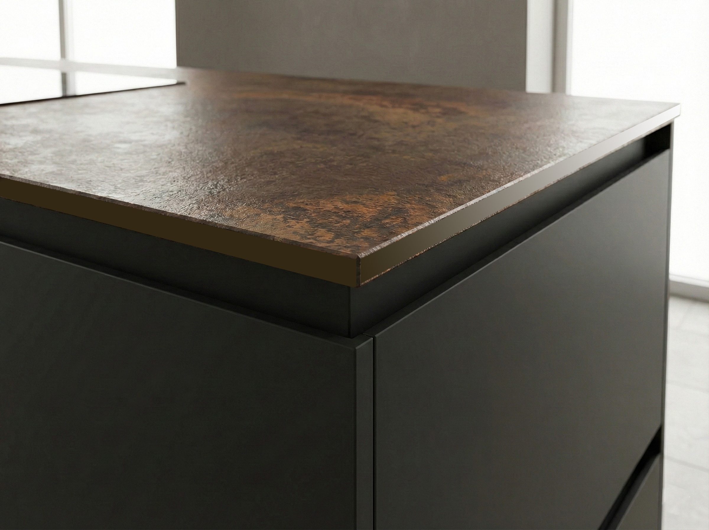 - HPL (Laminato ad Alta Pressione): È l’evoluzione “palestrata” del laminato. Molto più resistente e impermeabile, permette cose impossibili per il laminato standard, come l’installazione di lavelli integrati (senza bordi) per un look pulito e moderno.